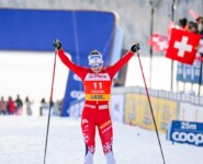 Auf der letzten Runde schien Nora Sanness noch mehr Kräfte zu haben und machte viel Führungsarbeit. 500 Meter vor dem Ziel auf dem Weg zum letzten Anstieg griff dann aber Astrid Øyre Slind an und setzte sich leicht von der Landsfrau ab. Das bedeutete den vierten Saisonsieg für die 36-Jährige. „Ich liebe diese Art von Rennen. Ich habe viele davon bei den SkiClassics gelaufen“, meinte Slind, die weiter erklärte: „Der Plan war, ruhig zu bleiben, bis es hier auf die Runde geht und dann das Tempo zu erhöhen. Ich wollte nicht bis zum Ziel in einer Gruppe laufen. Darum habe ich bergauf aufs Gas getreten.“ Zu der schneereichen Überraschung am Morgen sagte sie: „Es ist großartig, dass wir schließlich in diesen tollen sonnigen Bedingungen laufen konnten. Ich dachte, es würde ein Schneesturm werden mit mehr als einem halben Meter Neuschnee. So bin ich froh, dass sich das noch geändert hat.“ Die nächsten Weltcups wird sie bestreiten, aber aus dem Training heraus: „Ich werde nach Cogne fahren und dort nur die zehn Kilometer laufen und in Falun werde ich zwei Rennen bestreiten. Ich will mir die Rennhärte bewahren und zwischendurch viel trainieren, so dass die nächsten Rennen schwer werden, aber ich denke, jede macht das so.“ Für Nora Sanness war der zweite Platz jedoch ihr erster Podestplatz im Weltcup. Etwas weiter hinten hatte auch Diggins am letzten Anstieg attackiert, konnte sich aber nicht absetzen. So ging Platz drei am Schluss an Jonna Sundling, die als Sprinterin immer mit der Gruppe mitgelaufen war und am Schluss ihre Stärken ausgespielt hatte. Damit verhinderte sie ein weiteres rein norwegisches Podium, denn Anne Kjersti Kalvå wurde Vierte vor Jessie Diggins. Flora Dolci hatte im Endspurt nicht mehr mithalten können. Helene Marie Fossesholm gewann den Sprint der nächsten Gruppe und wurde Siebte vor Katerina Janatova, Moa Ilar und Teresa Stadlober.