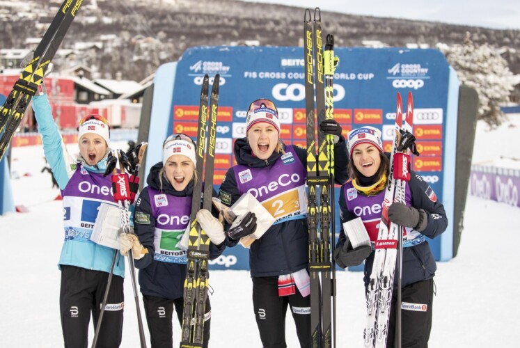 Die Norwegerinnen Heidi Weng, Therese Johaug, Ragnhild Haga und Ingvild Flugstad Østberg gewannen die 4×5 Kilometer Staffel in heimischen Beitostølen vor Russland II und Finnland. Die junge deutsche Staffel kam als Achte ins Ziel.