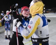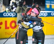Der Sprint der Damen hatte schon nominell eine klare Favoritin: Jonna Sundling. Schon im Prolog machte die amtierende Weltmeisterin und Olympiasiegerin ihre Favoritenrolle klar mit einem Vorsprung von 3,3 Sekunden Vorsprung vor Platz zwei. Die Schwedin war von Anfang an in der Führungsrolle und gab diese Position nie her. Dabei spielte ihr noch ein Sturz von Iris De Martin Pinter nach dem Anstieg in die Karten, durch den alle anderen aufgehalten wurden. Nur Maja Dahlqvist war beim Sturz noch neben der Italienerin, hatte aber offensichtlich nichts mit dem Sturz zu tun. Das stand dann auch für die Jury nach halbstündiger Beratung fest. „Ich war vorne und sie ist mir von hinten auf den Stock gefahren. Sie wollten überprüfen, ob ich wirklich vorne war. Aber ich war es, so war dann alles klar. Man ist richtig froh, wieder aus dem Juryraum herauszukommen. Das war das schwerste am heutigen Rennen“, sagte Dahlqvist dem schwedischen Viaplay. Eine ganz starke Leistung zeigten Coletta Rydzek und Laura Gimmler, die beide den Sprung ins Finale geschafft hatten. Wie im Training besprochen machten sie nach der Abfahrt in der FIS-Schneise ordentlich Druck und schlossen die Lücke. Vor allem Rydzek griff dann hinauf ins Stadion noch einmal an und ging an Dahlqvist vorbei. An Jonna Sundling kam sie auch mit einem tollen Zielsprint nicht mehr ganz heran. „Das fühlt sich großartig an. Skating mag ich am liebsten. Das war ein Highspeed-Rennen auf einer sehr schnellen Strecke. Die Strecke wurde schwieriger, als es dann kälter wurde, aber ich habe mich gut gefühlt. Man denkt viel über die Olympischen Spiele nach und ich denke, das war eine gute Vorbereitung darauf“, sagte Jonna Sundling am FIS-Mikrofon. Das Oberhofer Publikum feierte die DSV-Sprinterinnen mit „Oh, wie ist das schööööön“-Chören und auch Coletta Rydzek zeigte sich in Feierlaune. Als Dritte schaffte Maja Dahlqvist den Sprung aufs Podium, was Laura Gimmler knapp nicht gelang. Moa Ilar sammelte als Fünfte vor der gestürzten Italienerin viele wichtige Punkte für den Gesamtweltcup, weil Jessie Diggins nach taktischen Fehlern im Viertelfinale ausschied. Moa Ilar ist auch morgen im Einzelstart in der klassischen Technik die Topfavoritin. „Ich bin etwas enttäuscht, aber ich habe einen taktischen Fehler gemacht. Wir hatten heute tolle Ski, aber ich hätte weiter vorn sein sollen, um im Anstieg freie Bahn zu haben. Das ist enttäuschend, weil das heute eine große Chance war“, sagte Iris De Martin Pinter zu Fondo Italia nach dem Erreichen ihres ersten Final und dem ersten Finale einer Italienerin seit Lucia Scardoni in Dresden 2020.