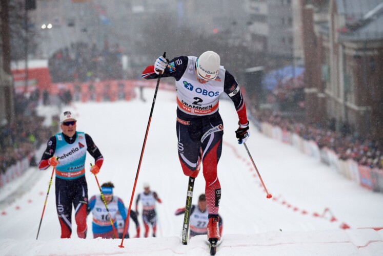 Alle Heats mit dem deutlich Prolog-Schnellsten Johannes Høsflot Klæbo wurden auch klar von dem Norweger dominiert. So ging er als klarer Favorit ins Finale, wo er auf Höhe der Kirche wieder deutlich das Tempo anzog und eine kleine Lücke reißen konnte. In der Abfahrt gelang es Eirik Brandsdal wieder aufzuschließen, die anderen vier Athleten hatten mit dem Ausgang des Rennens nichts mehr zu tun. Im Anstieg ging dann allerdings dem Topfavoriten die Luft aus, Brandsdal ging aus dem Windschatten in die Spur neben seinen Kollegen und gab Gas. Er mobilisierte alle Kräfte und Klæbo musste einsehen, dass er keine Chance mehr hat. Er drehte sich um und sicherte auf den letzten Metern nach hinten ab. Nun hat er ein großes Ziel dicht vor Augen: „Ich werde nun nach Quebec fahren und nicht am Holmenkollen starten. Ich habe nun das rote Trikot des Sprintführenden und werde versuchen, es in Quebec zu verteidigen und die Kristallkugel zu gewinnen.“ Für Eirik Brandsdal war es der erste Weltcupsieg nach zwei Jahren Pause – auch damals triumphierte er hier in Drammen. Sergey Ustiugov wurde Dritter vor Petter Northug und Pål Golberg sowie Sondre Turvoll Fossli. Bis zu diesem Siegerinterview mit Eirik Brandsdal verging allerdings etwas Zeit, da er mit Klæbo und Ustiugov mit Jubeln die ganz große Runde um den Brunnen fuhren. Während der Zweit- und Dritplatzierte dann oben für das Siegerfoto auf Brandsdal warteten, klatschte der überglücklich immer noch einige Meter unterhalb mit den Zuschauern ab und legte sich danach auch noch unfreiwillig auf die Nase. Schließlich erschien er doch zum Foto und Siegerinterview und sagte: „Es ist eine tolle Strecke. Ich liebe den letzten Anstieg, das ist immer ein harter Kampf. Ich hatte so steife Beine und war müde, aber irgendetwas hat mir noch Kraft gegeben. Es ist ein tolles Gefühl nach einer schweren Saison für mich, dass die dann so schön endet.“
