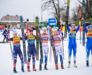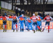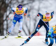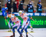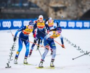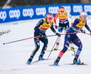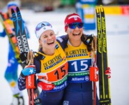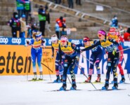 Jonna Sundling und Maja Dahlqvist – schon vor dem Start war wegen ihrer Überlegenheit klar, dass das wohl die Siegerinnen sein würden, sofern es keine Stürze gibt. Und so war es dann auch: Die beiden Schwedinnen hatten das Geschehen immer unter Kontrolle und feierten einen ungefährdeten Sieg. „Wir wollten immer vorne laufen, um bei der engen Strecke kein Risiko einzugehen“, erklärte Maja Dahlqvist die Taktik und Jonna Sundling fügte hinzu: „Man muss auch immer auf seine Stöcke aufpassen und sich gut konzentrieren.“ Dahinter reihten sich auf dem Podium mit den USA und Slowenien die erwarteten Podestkandidatinnen ein, was nach dem Rennverlauf jedoch eher eine Überraschung war: Die USA hatten Jessie Diggins als Arbeiterin aufgestellt und Julia Kern in der Heimat ihrer deutschen Eltern als Schlussläuferin. Bei Slowenien war die gewohnte Kombination mit Eva Urevc und Schlussläuferin Anamarija Lampic am Start. Mitte des Rennens lief Lampic auf die Skieenden von Diggins auf, so dass die Amerikanerin zu Fall kam und auch Lampic über die rüber stürzte. Während das US Ski Team schnell wieder heranlief, brauchten die Sloweninnen einige Runden. Dennoch waren sowohl Julia Kern als auch Anamarija Lampic im Zielsprint zur Stelle und holten sich trotz de Sturzes noch Platz zwei und drei vor den Finninnen Jasmin Kähärä und Schlussläuferin Jasmi Joensuu, der Im Zielsprint die Kräfte ausgingen. Hristina Matsokina und Natalia Nepryaeva belegten Platz fünf. Im Rennen hatte Nepryaeva auf ihren Runden immer das Tempo hochgehalten, um der schwächeren Matsokina den Druck zu nehmen – für den Zielsprint fehlten dann aber natürlich die Kräfte. Kristine Stavås Skistad und Mathilde Myhrvold kamen als Sechste ins Ziel.