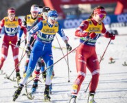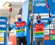 Anders als in anderen Teamsprints wird in Dresden in diesem Jahr nach jeder 700 Meter langen Runde gewechselt, so dass insgesamt zwölf Runden im Halbfinale und Finale zu laufen sind und jeder Sportler nur etwa eine Minute Erholung hat, bevor schon wieder gewechselt wird – darum sind während des Rennens auch keine Skiwechsel möglich. Im Finale der Damen machten zunächst die Schweizerinnen Laurien van der Graaff und Nadine Fähndrich das Tempo, bis sich Mitte des Rennens wie schon gestern die Chinesinnen in die Führungsarbeit einschalteten. In der neunten von zwölf Runden erhöhte Yulia Stupak deutlich das Tempo, so dass sich das Feld teilte, nachdem beiden Duos Russlands bei den ersten Wechseln von mehreren Stürzen betroffen waren. Auch auf den folgenden Runden bestimmten Natalia Nepryaeva beziehungsweise Stupak das Geschehen und Stupak setzte sich in ihrer letzten Runde klar von Von der Graaff, Urevc und Diggins ab. Nepryaeva musste den Sieg in ihrer Schlussrunde nur noch nach Hause laufen und lange sah auch alles danach aus. In der zweiten Hälfte ihrer Runde mobilisierten aber Nadine Fähndrich und Anamarija Lampic noch einmal alle Kräfte, die der Russin immer mehr schwanden. Auf der Zielgeraden kam das Duo der Führenden immer näher und Nadine Fähndrich schnappte Nepryaeva noch knapp den Sieg weg. Damit feierte die Schweizerin, diesmal zusammen mit Laurien van der Graaff, ihren zweiten Sieg innerhalb von zwei Tagen. „Wir hatten ein sehr gutes Rennen. Letztes Jahr waren wir nah dran und wollten es endlich schaffen“, sagte Nadine Fähndrich, die damit beinahe ihre Worte vom Vortag wiederholte. „Das schönste Weihnachtsgeschenk, das man sich selbst machen kann.“ Yulia Stupak und Natalia Nepryaeva mussten sich mit Rang zwei begnügen gegen die bärenstarke Schweizerin. Eva Urevc konnte sich nach ihrer einjährigen Pause wegen eines Kreuzbandrisses über ihren ersten Podestplatz im Weltcup freuen, zusammen mit Anamarija Lampic. Rang vier ging an die US Girls Jessie Diggins und Sophie Caldwell Hamilton gefolgt von den Tschechinnen Katerina Janatova und Tereza Beranova.
