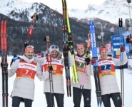 Die dritten fünf Kilometer sollten die entscheidenden für den Rennausgang werden, denn ein bärenstarker Edvin Anger lief sofort an Finnlands Remi Lindholm heran und ließ ihn bald stehen. Mit 16 Sekunden Vorsprung kam der Schwede zum letzten Wechsel – 16 Sekunden vor Österreich! Denn Sprinter Benjamin Moser hatte sich unerwartet gut geschlagen und sogar attackiert und sich so zehn Sekunden von Norwegen und 20 Sekunden von Finnland abgesetzt. Schweiz II lag mit 51 Sekunden Rückstand an fünfter Stelle, Schweiz I zehn Sekunden dahinter nur an achter Position. Moa Ilar war nach dem letzten Wechsel komplett im Verwaltungsmodus und brachte den Sieg problemlos nach Hause. „Es war hart, hat aber Spaß gemacht. Es war Vollgas vom Start, aber ich denke, ich habe es gut hingekriegt und den Abstand im Rahmen gehalten“, meinte Startläufer Jens Burman im Ziel. „Es war wirklich schwer, aber ich liebe diese fünf Kilometer, darum hatte ich eine gute Zeit da draußen“, sagte Emma Ribom und Edvin Anger gab ihr recht: „Auch ich mag die fünf Kilometer und die Strecke hier in Engadin. Abgesehen von dem Wind hat es Spaß gemacht.“ Für Moa Ilar war die Position als Schlussläuferin eine ganz besondere Aufgabe: „Das war großartig. Das Team hat vor mir einen super Job gemacht, so war ich sehr glücklich über den großen Vorsprung, den ich mitbekommen habe. Am Ende mit der Flagge ins Ziel zu laufen, war ein tolles Gefühl. Das war ein Kindheitstraum.“