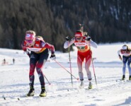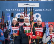 Der zweite Langlauf Weltcup im Engadin im Schweizer Kanton Graubünden begann mit einer 4 x 5 Kilometer Mixed-Staffel, in der die Herren die Staffel anliefen, auf die erste Dame wechselten und auch die Position des Schlussläufers war diesmal in weiblicher Hand – wie schon vor einem Jahr im Goms. Auf diese insgesamt sehr kurze Distanz von 20 Kilometern gingen aber nur die Gastgeber aus der Schweiz wie auch die Österreicher und Kanadier in Bestbesetzung, alle anderen schonten zumindest teilweise ihre besten Kräfte für Sprint und Massenstart, wo in manchen Nationen noch WM-Tickets vergeben werden. Die Weltcupstrecke am Ufer des Silvaplanersees hat nicht allzu viele Höhenmeter zu bieten, hat es aber wegen der Höhe von 1800 Meter über dem Meer in sich. Zudem wehte ein kräftiger Wind über das völlig offene Wiesengelände des Dorfes Surlej, so dass das Laufen in einer Gruppe von Vorteil war.
