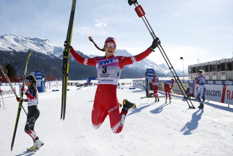 Teresa Stadlober konnte diesmal nicht mit den gewohnten Ergebnissen aufwarten. Kurz vor Ende der zweiten Runde konnte die Salzburgerin das Tempo nicht mehr mitgehen und wurde schließlich nur 17., nachdem sie den Zielsprint gegen Lotta Udnes Weng und Pia Fink verlor. Auch Nadine Fähndrich konnte nach dem ständigen Auf und Ab auf den Wiesen um Surlej nicht mehr mitsprinten und wurde 19. Das gelang aber auch Sprint Weltmeisterin Jonna Sundling nicht mehr, die mit ihrer Gruppe ins Ziel kam und hinter ihr landete. Laurien van der Graaff belegte Rang 48.