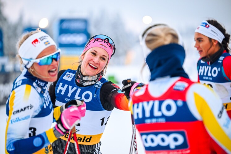 Im Finale der Damen bekam es Laura Gimmler auf einem schweren Sprintkurs mit schweren Bedingungen bei leichtem Schneefall mit vier Schwedinnen und einer Norwegerin zu tun. Anders als in den Heats zuvor ergriff im Finale direkt Kristine Stavås Skistad die Initiative und führte mit Jonna Sundling das Rennen in der FIS-Schneise an. Auf dem Rückweg zum Stadion teilten sich Jonna Sundling und Frida Karlsson die Führung gefolgt von Linn Svahn, die sich in der Sägespänerunde noch vor dem Anstieg der Henkel-Schleife von den anderen drei Damen absetzen konnten. Karlsson erhöhte das Tempo, aber oben erholte Linn Svahn. Im Endspurt auf der langen Zielgeraden war ihr ihr zehnter Weltcupsieg nicht mehr zu nehmen, Karlsson versuchte es aber auch gar nicht mehr, in der Spur daneben zu überholen und jubelte über Rang zwei. Für sie war es das erste Podium in einem Sprint: „Das ist genial! Das hätte ich nie erwartet!“ Dritte wurde Jonna Sundling. „Es hat Spaß gemacht, es war schön, wieder zurück im Rennen zu sein“, sagte Linn Svahn, die die Pause nach der Tour de Ski aber offenbar gut genutzt hat und auch noch das richtige Material an den Füßen hatte: „Wow, ich hatte großartige Ski heute, das hat wirklich Spaß gemacht und auch der schwedische Dreifachsieg. Das hatten wir schon eine Weile nicht mehr.“ Zu dem gemeinsamen Trainingslager in Italien mit Frida Karlsson befragt, sagte sie: „Wir hatten ein sehr gutes Training zusammen, aber es war eher eine Erholung. Aber wir haben auch ein paar Intervalle trainiert und so war es schön, zusammen auf dem Podium zu sein.“ Kristine Stavås Skistad kam diesmal über Platz vier nicht hinaus. Umso besser war das Ergebnis für Laura Gimmler, die Emma Ribom hinter sich ließ, die nach dem Stress der letzten Tage erschöpft war.