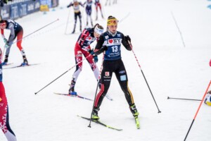 Um Platz vier sprinteten auch die ersten deutschsprachigen Athletinnen, die sich aber knapp der Norwegerin geschlagen geben mussten. Dennoch konnte sich Teresa Stadlober über einen sehr guten fünften Rang freuen, nachdem sie das ganze Rennen immer vorne dabei gewesen war. „Dieser fünfte Platz war heute ein super Abschluss dieser Saison und noch einmal bei der Flower Ceremony dabei zu sein, war einfach richtig cool. Das Rennen hat heute sehr viel Spaß gemacht, das Feld blieb lange zusammen und es ist richtig viel passiert. Ich hatte super Material, das Serviceteam hat hervorragende Arbeit geleistet und jetzt auch im Gesamtweltcup in den Top-Ten zu sein, ist einfach nur unglaublich schön“, freute sie sich. Auch Nadja Kälin konnte als Sechste noch an der Siegerehrung teilnehmen. Astrid Slind wurde Siebte vor der besten DSV-Läuferin Helen Hoffmann auf Rang acht gefolgt von Karoline Simpson-Larsen und Kristin Austgulen Fosnæs.