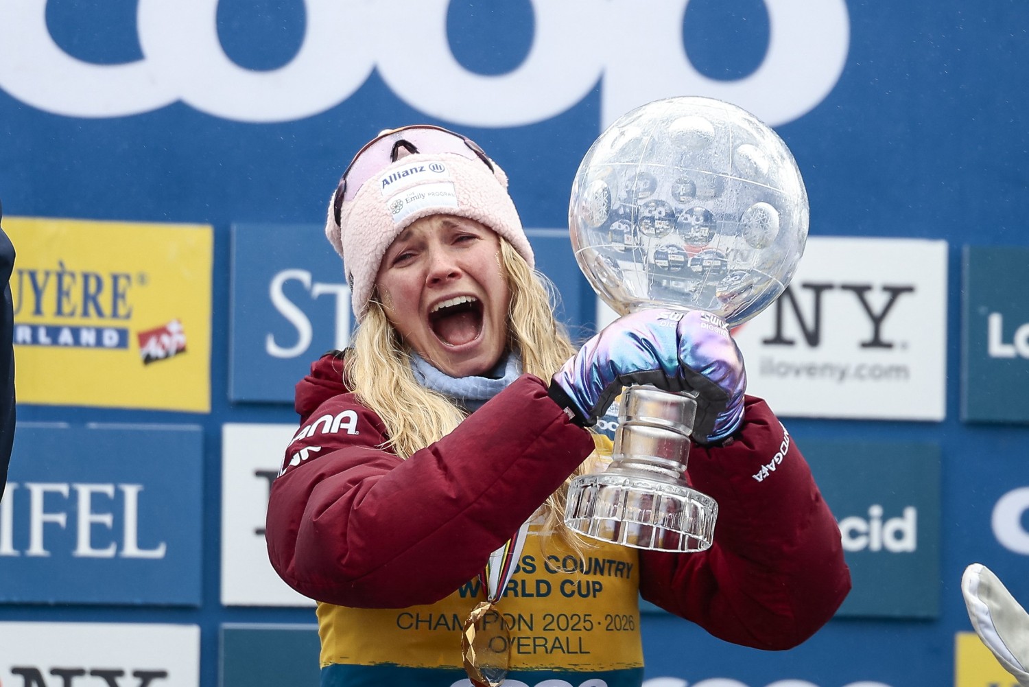 Trotz ihres Sturzes wurde Jessie Diggins hinter Liliane Gagnon noch gute Zwölfte und erreichte damit neben dem Gewinn zweier Kristallkugeln, darunter ihrem vierten Gesamtweltcup, auch ein Sieg über Klæbo: Diggins holte über die Saison ganze zwei Weltcuppunkte mehr als der sechsfache Olympiasieger von Mailand. Im Interview mit FIS-Pressesprecherin Synne Dyrhaug brach die 34-Jährige direkt in Tränen aus: „Darum sind Interviews so hart nach dem Rennen. Es war unglaublich und so viele Menschen haben mich angefeuert und es fühlt sich an, als würde die ganze Welt mit mir feiern. Das werde ich wirklich vermissen. Aber ich bin sehr dankbar, dass ich das machen konnte und für so viele Jahre Teil diesen wunderbaren Teams war. Ich bin so aufgeregt, das mit dem Team zu feiern, mit allen Technikern und Trainern.“ Was mit Frida Karlsson geschah, konnten TV-Bilder nicht auflösen. Bei der letzten Zwischenzeit vor Diggins‘ Sturz war sie noch vor der Amerikanerin unterwegs, kam dann aber erst mit 24 Sekunden Rückstand als 15. ins Ziel. Wie schwedische Medien berichten, ist die 26-Jährige in der letzten Abfahrt zu Fall gekommen. Möglicherweise entstand dadurch die große Lücke zwischen Sundling und den Verfolgerinnen Svahn und Weng. „Da war es dann vorbei. Das hat das Rennen leider entschieden“, sagte Frida Karlsson später.