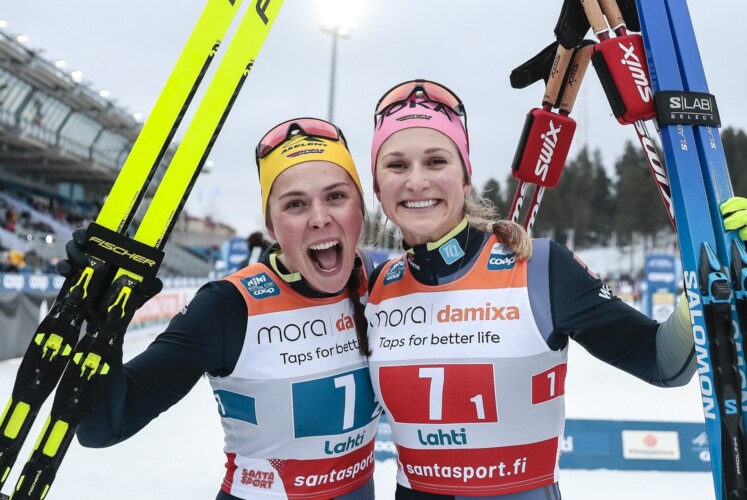 Mit den drei Top6-Plätzen zeigte sich das deutsche Team mehr als zufrieden. „Mega glücklich trifft es ganz gut“, sagte Laura Gimmler. „Es war unser erstes Weltcup Podium und ein großes Ziel nach den zwei vierten Plätzen, die wir hatten. Es fühlt sich an, als wäre es eine Belohnung auch dafür noch. Ein ziemlich cooles Ende für eine ziemlich coole Saison.“ Coletta rydzek ergänzt: „Mit der Laura auf dem Podium zu stehen, ist sehr besonders und ich bin froh, dass wir das beide so gut gemacht haben. Deswegen habe ich mir auf der Zielgeraden gedacht, die muss ich noch packen, wir wollen aufs Podium! Mega gut, das es geklappt hat. Wir haben unsere Kräfte beide gut eingeteilt und eine gute letzte Runde gemacht. Da können wir stolz auf uns sein.“ Auch Anian Sossau war nach seinem Teamsprint mit Jan Stölben überglücklich: „Das Rennen war mega mega geil. Die erste Runde habe ich noch Energie sparen können, die zweite auch und die letzte bin ich einfach nur rübergeflogen über die Loipe. Im Teamsprint ist alles möglich und weit waren wir nicht weg. Ich hoffe, dass es in den nächsten zwei Jahren dann mal aufs Podium reicht“, meinte er und fügte hinzu: „Ich nehme die gute Wettkampfeinteilung mit in den Sprint morgen, dass man hintenraus noch viele Körner raushauen kann und Platzierungen machen kann. Aber Skating mag ich lieber.“ Auch Teamchef Peter Schlickenrieder zog ein rundum zufriedenes Fazit aus dem Beginn des letzten Wochenendes der Saison: „Toller Auftakt in das Finale in Lahti mit dem Teamsprint. Beide Damenteams haben eine große Performance hingelegt. Der Zielsprint war vom Allerfeinsten, aber auch die Vorbereitung des Zielsprints war bei beiden hervorragend. Das ist eine Teamstärke, wie ich es mir vorstelle. Besser könnte es nicht sein, das gibt Motivation für die nächsten Tage für den Einzelsprint aber auch für die abschließende lange Strecke. Was die Mädels hier gezeigt haben ist top, hier mit einem Podium die Teamwettbewerbe abzuschließen und mit einem fünften Platz. Tolle Leistung von allen, von Laura Gimmler, Coletta Rydzek, Pia Fink und Sofie Krehl. Das war heute eindrucksvoll und ein spannendes Rennen und wenn wir den Drive mitnehmen, steht uns eine wunderbare Zeit bevor und zwei wunderschöne abschließende Rennen.“ Auch für die beiden U23-Herren war er voll des Lobes: „Ebenso toll die junge Wilden Anian Sossau und Jan Stölben, unsere Youngster. Tolle Performance abgeliefert, mit den absoluten Weltklasse-Sprintern mitgehalten bis auf die Ziellinie und dann den sechsten Platz eingefahren. Ebenso tolle taktische Leistung, Kräfte gut eingeteilt und gezeigt, was sie können, was möglich ist und wo wir uns hinbewegen wollen. Das macht auch allen Sprintern zu Hause Mut, dass wir hier auf einem guten und richtigen Weg sind und dass viel Üben von Sprintsituationen und Sprintwettkämpfen eine ganz entscheidende Geschichte sind, um auf höchster Ebene so eine Performance abliefern zu können. Wir sind mehr als zufrieden mit drei Top6 Plätzen, das gibt Motivation für die nächsten Rennen mit dem Klassiksprint und dem Massenstart in klassischer Technik, bei dem man nicht zu viel erwarten sollte. Es war eine lange Saison, ein hartes Programm und darum denke ich, alles was jetzt kommt, ist Zubrot und Vorbereitung auf die nächste Saison.“