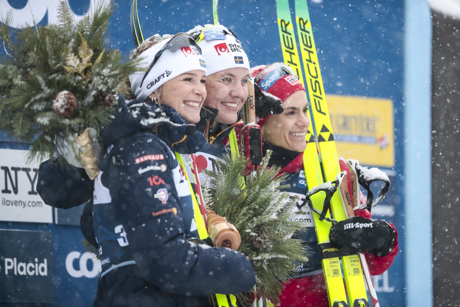 Der Schnee hielt dann doch schon früher als angekündigt in Lake Placid Einzug und sorgte im Klassik-Einzelstart bei -2° für schwierige Wachsbedingungen. Anders als zuletzt in Oslo waren die Sichtbedingungen aber nicht so schlecht und „Wo ist Behle?“ musste man heute auch nicht rufen wie damals bei den Olympischen Spielen 1980. Die Sportler erlebten in den letzten Tagen einen Temperatursturz von +13°C auf unter Null. „Am ersten tag wünschten wir uns Shorts und T-Shirts. Am nächsten Tag wollten wir am liebsten alles anziehen, was wir dabei haben“, sagte Moa Ilar dem Aftonbladet. Die rote Gruppe der gesetzte Sportlerinnen begann mit Frida Karlsson und Startnummer 32. Schon vorher war es aber Linn Svahn, die mit Nummer zehn eine grandiose Bestzeit vorlegte, an der sich wie in Lahti alle die Zähne ausbissen. Während die als Zehnte gestartete Svahn unmittelbar hinter der deutlich vor ihr gestarteten Amerikanerin Kendall Kramer als Zweite ins Ziel einlief, kam auch die unter Jetlag leidende Frida Karlsson zunächst deutlich nicht an ihre vorgegebenen Zwischenzeiten heran. Vor dem Start hatte Kikkan Randall schon im Interview gewarnt, dass man sich das Rennen gut einteilen muss und nicht zu schnell angehen darf. Genau das passierte aber wohl der Sprintspezialistin, die in der zweiten Runde deutlich auf Karlsson verlor. Nach 6,7 Kilometern im Anstieg lag Karlsson gleichauf mit Svahn, nach 8,8 Kilometern in der Abfahrt war Karlsson drei Sekunden vorn. Die 26-Jährige hatte das Rennen gedreht – oder doch nicht? Schwer abgekämpft kam die Doppel-Olympiasiegerin im dichten Schneefall ins Ziel mit einem Rückstand von 1,4 Sekunden auf Svahn, die sich ihren erste Weltcupsieg in einem Einzelstart holte. „Das ist sehr schön. Ich hatte schon Massenstarts gewonnen und nun endlich auch einen Einzelstart. Es war wieder eng mit Frida. In Lahti hatte sie das beste Finale und nun habe ich es geschafft. Ich habe den Eindruck, dass ich noch in guter Form bin. Die Zuschauer waren toll und haben alle angefeuert“, sagte Svahn im Siegerinterview.