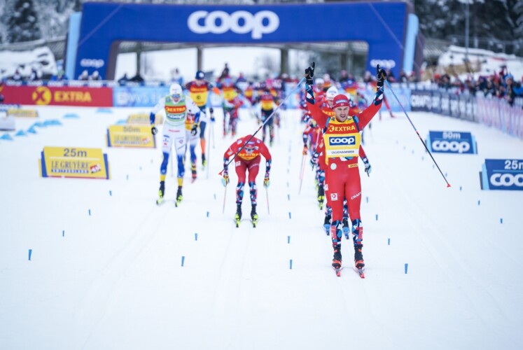 Erwartungsgemäß blieb eine große Gruppe von 41 Athleten bis zum Beginn der letzten Runde zusammen, weil sich auf den leichten Strecken niemand absetzen konnte und das Tempo gering war. Eigentlich perfekt für Klæbo, aber der musste erneut wegen Halskratzen absagen. Durch das geringe Tempo hielt auch Musgrave noch lange vorne mit, konnte in den Abfahrten immer wieder zu den Führenden aufschließen. Erst in der letzten Runde musste er seiner Skiwahl endgültig Tribut zollen: Das Risiko hatte sich nicht ausgezahlt, was bei den leichten Wachsbedingungen bei klaren Minusgraden auch unwahrscheinlich gewesen war.