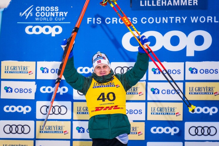 Simen Hegstad Krüger entschied die zehn Kilometer im freien Stil beim Langlauf Weltcup in Lillehammer für knapp. Hans Christer Holund und Martin Løwstrøm Nyenget komplettierten das norwegische Podium.
