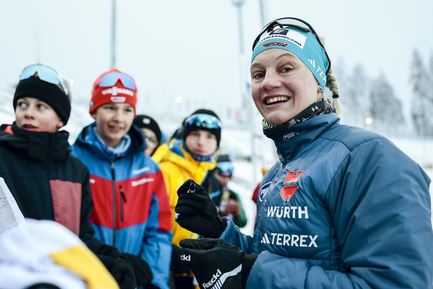 „Wir wollen viele in die Top30 bringen und uns vorne zeigen. Wir sind froh, dass wir in Oberhof vor Freunden und Familie laufen können. Das kommt nicht so oft vor. Es ist eine schöne Strecke, gute Bedingungen und ich denke, das könnte ein guter Tag für uns werden“, sagte Katharina Hennig vor dem Massenstart und sollte Recht behalten. Immer zeigte sich Hennig zusammen mit Victoria Carl ganz vorne im Rennen und war zu Stelle, als Karlsson angriff. Gegen die Schwedin konnte die Sächsin zwar nichts ausrichten, jubelte aber dennoch über Platz zwei. „Es ist alles nach Plan verlaufen, es war ein richtig, richtig cooles Rennen“, freute sie sich nach dem Erfolg und lobte das Publikum: „Die Stimmung am Birxstieg, das war fast wie in Norwegen. Es war richtig, richtig laut, die standen da in Dreier, Viererreihen teilweise und das hat uns sehr motiviert. Wir hatten super Ski und am Ende in der letzten Runde heißt es einfach schauen, was noch drin steckt. Ich bin sehr glücklich, heute Zweite geworden zu sein. Es lief etwas holprig an und bei der Tour wurde es immer besser und jetzt habe ich mich belohnt mit dem Podium.“