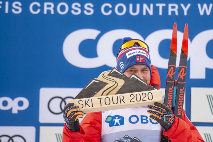 Pål Golberg feierte mit dem Sieg der Ski Tour 2020 seinen bisher größten Erfolg im Langlauf Weltcup. Seine Teamkollegen Simen Hegstad Krüger und Hans Christer Holund.