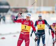 Leichter Schneefall herrschte im Viertelfinale der Damen, der schließlich in Schneeregen überging und vor Beginn der Halbfinals vorerst aufhörte. Der große Regen, der vor allem für morgen angesagt ist, ließ während des heutigen Rennens noch auf sich warten. Dunkle Wolken nähern sich bei Rennende aber bereits dem Stadion. Dennoch war es seit dem Prolog mit -3°C definitiv wärmer geworden und der Schnee bei 0°C weicher geworden. Im Finale der Damen kämpfen zwei Norwegerinnen gegen zwei Schwedinnen sowie eine Deutsche und eine Amerikanerin. Nach dem Start überließen Jessie Diggins und Victoria Carl zunächst den Skandinavierinnen das Kommando bei geringem Tempo, aber schon zu Beginn des ersten Anstiegs zog das Duo an den anderen vorbei. Nach der Hälfte des Laufe führte aber wieder Kristine Stavås Skistad vor Linn Svahn, Emma Ribom, Jessie Diggins und Victoria Carl. Dann attackierte Svahn und setzte sich gemeinsam mit der Teamkollegin und Skistad ab. Im Zielsprint sah alles nach dem ersten Sieg für Svahn nach mehr als 1000 Tagen wegen ihrer langen Verletzung aus, dann kam aber doch noch Skistad auf und holte sich den Sieg vor Svahn und Ribom, zwischen denen das Zielfoto entscheiden musste. „Ich bin froh über meinen ersten Sieg in dieser Saison. Meine Taktik war es, schnell zu laufen. Das Wetter mag keiner, aber man kann es nicht ändern“, so Skistad. Diggins und Carl konnten die Lücke nicht mehr zulaufen und die Amerikanerin setzte sich im Endspurt durch. Sechste wurde Lotta Udnes Weng, die diese Position im Finale nie verließ, nachdem sie zuvor noch als Lucky Loser ins Finale gekommen war.
