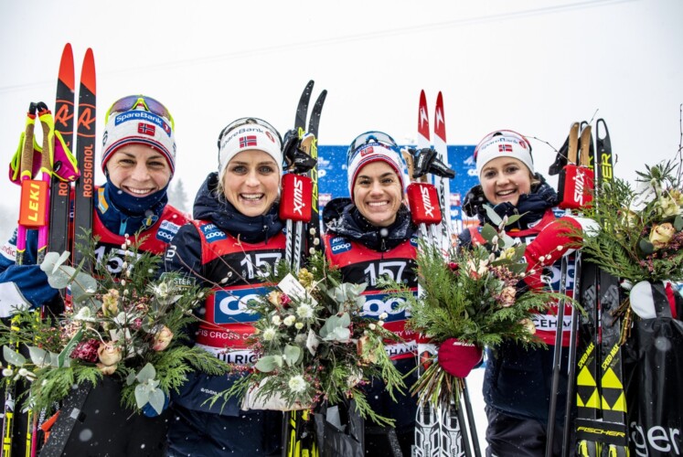 Beim Weltcup der Skilangläufer im westschwedischen Ulricehamn war über Nacht der Winter eingekehrt. Am erwarteten Ergebnis änderte das jedoch nichts: Norwegens Heidi Weng, Therese Johaug, Astrid Uhrenholdt Jacobsen und Ingvild Flugstad Østberg gewannen letztlich souverän vor Schweden und Finnland.