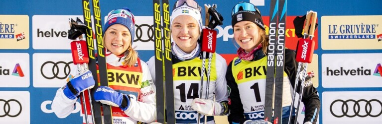 Highlights Langlauf Weltcup Davos (SUI) Siegerin Linn Svahn (SWE) strahlte über das ganze Gesicht, Platz zwei und drei ging in einem sehr engen Fotofinish an Maiken Caspersen Falla (NOR) und Sophie Caldwell (USA), (l-r) © Modica/NordicFocus 1 2 3 4 5 6 7 8 9 10 11 12 13 14 15 16 17 18 19 20 21 22 23 24 25 26 27 28 29 30 31 32 33 © Bilder 1 - 33: Modica/NordicFocus;
