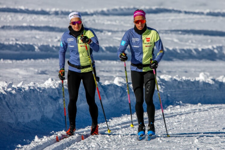 Im Sprint hängen die Trauben etwas höher. Sofie Krehl schielt sicherlich auf die Top-15. Bei Coletta Rydzek und Nadine Herrmann wären wir sehr zufrieden, wenn sie sich für die Finalläufe qualifizieren. Lena Keck, die sich über den Continental-Cup qualifiziert hat, kommt dazu und wird ihr Weltcup-Debüt haben. Sie soll Weltcup-Luft schnuppern, Nervosität ablegen, Routine entwickeln und lernen.