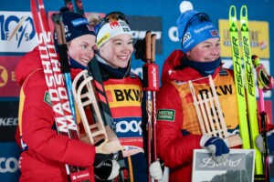 Coletta Rydzek sagte schon gestern nach Platz vier in Davos, dass Davos mit der Höhe nicht ihre Strecke sei und sie bis dahin noch nie ein gutes Rennen gemacht hatte. Ein bisschen bestätigte sie das heute, auch wenn Platz neun kein schlechtes Ergebnis ist und ihr bestes Davos-Resultat im Einzel-Sprint. Nach gutem Prolog und Viertelfinale tat sie sich im Halbfinale schwer und konnte auch auf der Zielgeraden diesmal keine Plätze gutmachen. Damen-Trainer Axel Teichmann sagte später: „Coletta war im Viertelfinale sehr gut. Im Halbfinale hat sie leider im Kampf Frau gegen Frau den Kürzeren gezogen und ist deshalb im Halbfinale ausgeschieden. Aber für Coletta ist das ein sehr gutes Sprintresultat, das beste hier in Davos. Mit ihren drei Sprints in dieser Saison können wir zufrieden sein.“ Auch die Oberstdorferin selbst sprach von einem guten Rennen: „Grundsätzlich bin ich auf jeden Fall zufrieden. Mein Ziel vor der Saison war es, regelmäßig ins Halbfinale zu kommen und solide Prologe zu schaffen und das gelingt mir bisher sehr gut. Darum bin ich zufrieden, aber wenn man mit einem Finale in die Weltcupsaison gestartet ist, will man es immer mehr und jetzt war es gestern so knapp zum Podium, heute so knapp zum Finale, das ärgert einen natürlich schon“, sagte Coletta Rydzek und erklärt weiter. „Das Viertelfinale ist mir super gelungen, das Halbfinale war natürlich stärker besetzt mit den Top-3 im Prolog, deswegen war das natürlich ein bisschen schwieriger. Aber ich hatte mich eigentlich gut platziert und wollte auf der Zielgerade nochmal angreifen. Leider bin ich da ein bisschen blockiert worden, natürlich alles fair im Rahmen, aber das nimmt einem ein bisschen den Schwung raus, deswegen hat es dafür nicht ganz gereicht. Meine Leistung hat nur mit mir zu tun, zumindest meistens, deswegen kann man den anderen dann auch Glück fürs Finale wünschen.“