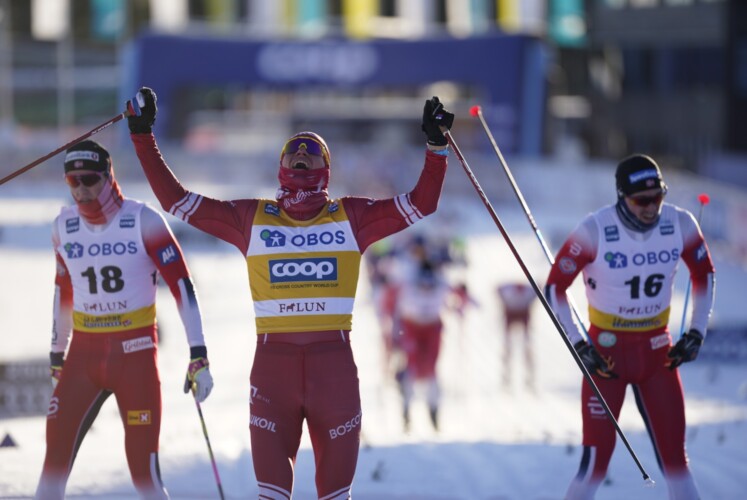 2,5 Kilometer vor dem Ziel begann der Russe, das Tempo deutlich anzuziehen, so dass sich Lücken im Feld auftaten. Bolshunov konnte sich absetzen und nur Pål Golberg konnte ihm mehr oder weniger folgen, hatte in der Abfahrt zum Stadion aber keinen Windschatten. Aber auch Johannes Høsflot Klæbo kam immer näher, so dass es auf der Zielgeraden doch noch einmal eng wurde. Schließlich mussten sich Golberg und Klæbo dem Russen bei seinem erneuten Sieg knapp geschlagen geben. „In Falun zu siegen ist immer schön, weil…. dies ist schon mein viertes Rennen, dass ich hier in Falun gewinne“, freute sich Bolshunov bei MatchTV, obwohl er den Sturz auch nicht ganz unbeschadet überstanden hatte. Zum Rennen sagte er: „es war ein schnelles Rennen und dann dieser Sturz…. Ich hatte Glück, dass die Athleten hinter mir aufgepasst haben und nicht in mich reingefahren sind. Ich stand auf und machte weiter. Ich hatte heute viel Glück. Ich fiel ans Ende der Gruppe zurück und musste etwa 40 Athleten wieder überholen. Musgrave und Ilya Poroshkin fuhren vor mir und berührten sich, so dass sie vor mir stürzten. Ich konnte nicht ausweichen.“ Unerwähnt ließ er in diesem Interview, dass er sich beim Sturz offenbar an der linken Hand wehgetan hatte, wie man im Ziel sehen konnte, als er die Hand immer wieder bewegte. Rang vier in diesem turbulenten Rennen ging an Emil Iversen gefolgt von Sjur Røthe und Francesco de Fabiani. Sergey Ustiugov konnte als sehr guter Siebter überzeugen vor seinen Landsmännern Ilia Semikov und Ivan Yakimushkin. Jens Burman wurde Zehnter vor dem selbstbewussten 20-jährigen William Poromaa, der sich selbst in der Zukunft auf einem Niveau mit Bolshunov sieht und gerne mal mit den Russen trainieren würde, um zu sehen, warum sie so stark sind.