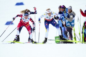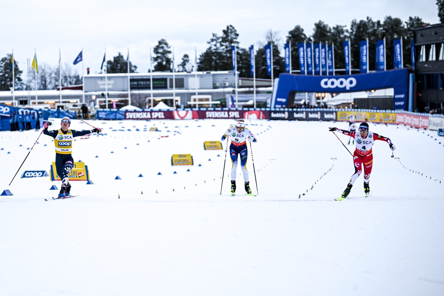 Zu dritt ging es also auf den Sprintkurs, wo noch zwei kleine Anstiege auf dem Programm standen. Inzwischen hatte Frida Karlsson die Führung übernommen, wollte aber Weng vor der Abfahrt in die Führungsposition drängen. Als das misslang, versuchte sie den Sieg von vorne zu holen. Diggins hatte schon seit einigen Kilometern sichtlich gelitten und war am Sprintanstieg völlig k.o. und strauchelte erschöpft. Die entstehende Lücke konnte sie bis zur Brücke im Stadion wieder schließen, so dass in der Zielkurve alle drei wieder zusammen waren. Weng ging als Erste auf die Zielgerade, wo alle drei Seite an Seite um die Plätze kämpften. Heidi Weng holte sich um Haaresbreite vor Diggins den Sieg, Karlsson wurde vor heimischem Publikum und ohne starke nationale Konkurrenz wie die erkrankten Ebba Andersson und Jonna Sundling nur Dritte. Möglicherweise hat sich da der fieberhafte Infekt vom letzten Wochenende noch ausgewirkt. „Das fühlt sich so gut an. Auf den letzten Metern wusste ich nicht, ob ich vorne bin oder nicht. Ich habe mich heute gefühlt als ob ich alles schaffen könnte. Ich habe versucht, in der letzten Runde im Mördarbakken zu attackieren und ich habe gehofft, dass die anderen schwerere Beine als ich haben. Ich denke, das war ein guter Plan. Als ich merkte, dass nur noch Frida und Jessie bei mir sind, habe ich mich gefreut, dass ich heute ein Podium hole. Ich habe gemerkt, dass heute mein Tag ist und das ist großartig“, freute sich die Norwegerin über ihren 14. Weltcupsieg – den letzten holte sie im März 2021 beim Finale im Engadin. Mit elf Sekunden Rückstand holte sich Linn Svahn den vierten Rang, nachdem sie wie auch Nepryaeva, Fosnæs, Ilar und Kälin bei der Tempoverschärfung im finalen Mördarbakken den Anschluss verloren. Die neutrale Russin Dariya Nepryaeva sicherte sich als Fünfte ihr bestes Weltcupresultat vor Kristin Austgulen Fosnæs. Nadja Kälin wurde erneut sehr gute Siebte vor Moa Ilar.