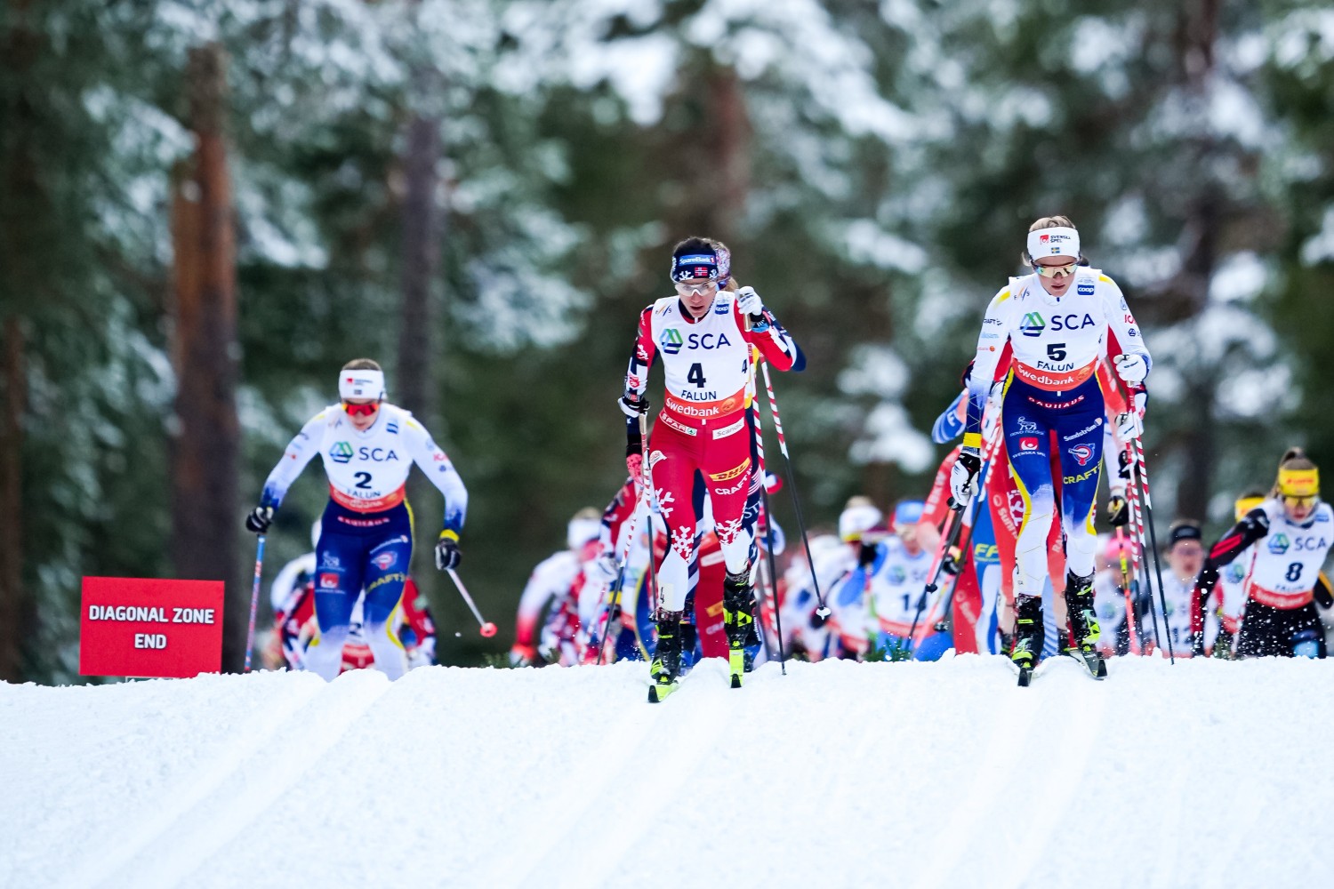 Während Frida Karlsson nach dem Wechsel auf die Skatingtechnik das Kommando an der Spitze übernahm, veränderten sich die Gruppen ständig. Vorne bei den ersten Acht war nach dem Mördarbakken das Tempo raus, so dass die von Nora Sanness angeführten Verfolger immer näher kamen. Als im Stadion nach 15 Kilometern niemand die Führungsarbeit machen wollte, drehte Frida Karlsson sich um und verschärfte direkt das Tempo, so dass die Lücke für Sanness und auch Simpson-Larsen, Dahlqvist und Kramer einige Sekunden dahinter wieder größer wurde. Im letzten Mördarbakken war es dann aber Heidi Weng, die einen Angriff versuchte und sich sogar von Karlsson leicht absetzte. Aber auch diesmal war es, wie es kommen musste: Obwohl es in Falun den gefürchteten Mördarbakken gibt, sind die Strecken sonst sehr wellig und ohne große Schwierigkeiten, so dass Karlsson und auch die schon einige Sekunden abgehängte Jessie Diggins am entlegensten Punkt am roten Dalahus wieder herankamen.