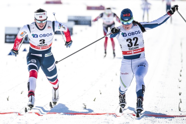 Heidi Weng musste einen weiteren schweren Rückschlag hinnehmen, so dass es nun wirklich noch richtig eng um die große Kristallkugel wird und Teamkollegin Ingvild Flugstd Østberg sogar die besseren Karten hat. Heidi Weng brauchte lange, um sich nach dem Start nach vorn zu schieben und die investierten Kräfte fehlten bald, als die Gruppe sich teilte. In der zweiten Rennhälfte verlor sie den Anschluss, verlor innerhalb weniger hundert Meter auch einige Sekunden auf Katharina Hennig und kam schließlich als 22. mit 44 Sekunden Rückstand ins Ziel. In der Gesamtwertung des Weltcupfinals nach zwei von drei Etappen liegt sie damit nur an 21. Stelle mit 1:32 Minuten Rückstand auf die Führende. Schon jetzt beträgt ihr Vorsprung im Gesamtweltcup nur noch 107 Punkte auf Ingvild Flugstd Østberg und auch morgen wird es mit dem Rückstand schwer, die nötigen Punkte zu holen, um im Gesamtweltcup vorn zu bleiben. Heidi Weng hatte es selbst schon bei den Olympischen Spielen gesagt – sie hatte bei ihrer schlechten Form kein gutes Gefühl im Hinblick auf die große Kugel…