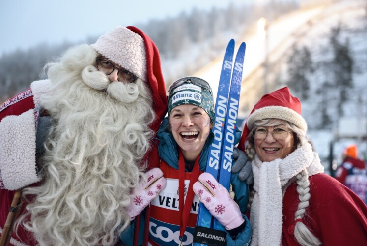 Obwohl es für die deutschen Damen zwischenzeitlich nach Positionen um Platz zehn aussah und Victoria Carl, Katharina Hennig und Pia Fink nach vier Runden am Ende der Verfolgergruppe hingen, mobilisierten sie auf der Schlussrunde noch einmal alle Kräfte. Unter Führungsarbeit von Carl bekamen auch Athletinnen wie Ebba Andersson Probleme und nach der letzten Passage des Impilinna lag die Thüringerin an fünfter Stelle vor Nora Sanness, Andersson und Sophia Laukli. Auf dem Weg zum Stadion konnten Hennig und Stadlober sich wieder zu Carl nach vorne arbeiten, so dass sie im Ziel die Plätze fünf bis sieben belegten. „Ich bin super glücklich und happy heute. Ich muss ehrlich gestehen, dass ich mit diesem Rennen hier in Ruka auf Kriegsfuß stand bisher. Das war jetzt mein neuntes Mal hier in Ruka und ich bin diverse Male wirklich gestorben. Letztes Jahr war es besonders schlimm, weil es auch so kalt war. Davon habe ich ein leichtes Trauma, deswegen hatte ich heute sehr sehr großen Respekt vor dem Start, ich war sehr nervös, einfach nur vor dem Schmerz, der mich erwartet“, sagte die überglückliche Katharina Hennig. „Deswegen bin ich nun umso glücklicher, dass es heute so gut lief in meiner schwächeren Technik, dass ich mithalten konnte. Ich habe es erst so richtig geglaubt, als wir in die letzte Runde gegangen sind und ich am langen Anstieg oben noch dran war, dass es was Gutes wird und ich nicht mehr eingehe. Deswegen bin ich jetzt sehr glücklich, wir hatten super Ski und ein tolles Teamergebnis. Endlich das Trauma überwunden!“ Auch Victoria Carl war glücklich mit ihrem Rennen: „Am Freitag habe ich mich nicht über das Ergebnis geärgert, sondern dass ich meine Technik im Wettkampf nicht rüberbringen konnte, was ich vorher im Training immer super gemacht habe. Heute war die Taktik, sich so lange wie möglich zu verstecken, mitzuschwimmen und in der letzten Runde möglichst voll zu powern. Das ist uns glaube ich gut gelungen. Natürlich hätte ich gerne den Anschluss nach ganz vorne gehalten, aber der Antritt kam in einem Moment, wo es mir nicht ganz so gut ging, wo ich mich dann aber wieder gefangen habe. Aber wir sind super zufrieden, dass wir da als Team vorne reinlaufen konnten und um die vorderen Plätze mitkämpfen“, sagte sie.