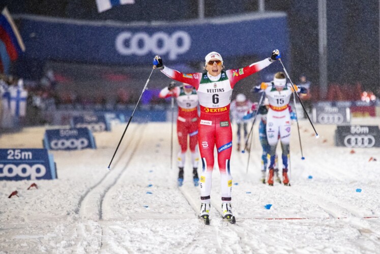 Mit Maiken Caspersen Falla und Johannes Høsflot Klæbo freuten sich zwei absolute Top-Favoriten über den Auftakt-Sieg im Schneefall in Ruka. Die weiteren Podestplätze auf der ersten Etappe der Drei-Tages-Tour holten sich Jonna Sundling und Sadie Maubet Bjornsen sowie Pål Golberg und Richard Jouve.