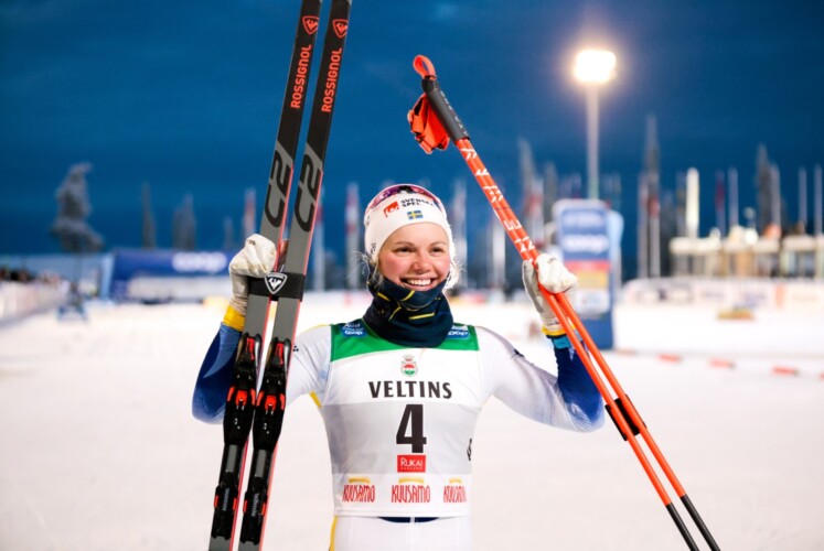 Bei -13°C und bestem Winterwetter startete der Langlauf Weltcup mit dem Klassiksprint in die Saison und bei diesem Wetter war das Wachsen zumindest bei den großen Nationen kein allzu großes Problem. Wie schon in der letzten Woche in Beitostølen bewies Kristine Stavås Skistad wieder gute Form, aber auch die Schwedinnen zeigten in jedem Lauf, dass mit ihnen wieder zu rechnen ist. Im Finale führte allerdings zunächst die Norwegerin, die Schwedinnen gaben in beiden Anstiegen Gas und die Norwegerin wurde durchgereicht. Aber auch bei den Schwedinnen lief wieder einmal nicht alles perfekt. Zwar führte Maja Dahlqvist nach dem Anstieg im Stadion vor Emma Ribom und Johanna Hagström, aber dann rutschte Dahlqvist weg, als ihre Ski die der Kolleginnen berührten. Ab diesem Zeitpunkt war Bruksvallarna-Siegerin Emma Ribom nicht mehr zu schlagen und stürmte ihrem ersten Weltcupsieg entgegen. Hagström konnte sich um Haaresbreite vor Tiril Udnes Weng behaupten und mit der Teamkollegin gemeinsam jubeln. „Das fühlt sich toll an. Es ist schön, dass meine Eltern hier sind und darum ist es ein besonderer Tag für mich. Für Maja ist es aber sehr schade“, sagte Emma Ribom. Aber auch Tiril Udnes Weng war mit dem Podium sichtlich zufrieden, nachdem nach der letzten Saison eine schwere Zeit für die norwegischen Damen prophezeiht worden war. Jasmi Joensuu wurde vor heimischem Publikum sehr gute Vierte vor Skistad und der zutiefst enttäuschten Dahlqvist.