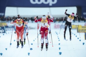 Bärenstark präsentierten sich heute auch die Österreicher, die drei Athleten in die Heats brachten und einen davon ins Halbfinale. Dort gehörte Benjamin Moser, der in Muonio den Klassiksprint gewonnen hatte, dann aber zu den geschlagenen Athleten in den Anstiegen. Nur weil Emil Liekari im letzten Anstieg noch komplett durchgereicht wurde, kam er noch als Fünfter ins Ziel, was schlussendlich Rang zehn bedeutete. Michael Föttinger und Erik Engel belegten im Viertelfinale die Plätze 20 und 24. Für den jungen Erik Engel war es das erste Erreichen des Viertelfinals bei seinem dritten Weltcupstart. Magdalena Scherz verpasste um Haaresbreite als 31. die Heats und auch Lukas Mrkonjic und Tobias Ganner beendeten den Sprinttag vorzeitig.