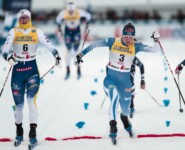 Dagegen verlief der Sprint für das deutsche Team enttäuschend. Die Skitechniker hatten sich wie in Muonio auf in Ruka übliche eisige Temperaturen eingerichtet und der Wetterumschwung mit viel Regen in der Nacht und plus drei Grad am Renntag kam zum unpassendsten Moment. Darum war für die drei qualifizierten Sprinterinnen im Viertelfinale Schluss. Damit konnte man natürlich nicht zufrieden sein – auch Laura Gimmler nicht, die 21. wurde: „Nein, natürlich nicht. Ich weiß nicht, wann ich das letzte Mal Klassisch im Viertelfinale ausgeschieden bin. Gott sei Dank lange nicht mehr“, sagte die Oberstdorferin. „Klar war heute das Mindestziel, das Halbfinale zu erreichen. Das heißt jetzt auch nichts, es ist nichts verloren. Ich werde jetzt deshalb nicht an mir zweifeln und den Kopf in den Sand stecken, aber klar ist man erstmal ein bisschen traurig, wenn es nicht geklappt hat. Die Bedingungen sind schon schwierig. Unsere Techniker haben jetzt zwei oder drei Wochen lang für ganz kalte Bedingungen getestet und jetzt ist es auf einmal über Nacht nass und warm. Woran es genau gelegen hat, das muss man manchmal nicht so genau wissen. Einfach weitermachen und dann wird es sich demnächst wieder lösen und gut laufen. Da bin ich ganz sicher.“ Coletta Rydzek lag ebenfalls nicht in optimaler Position, als sie sich oben am Anstieg mit der Italienerin Caterina Ganz verhakte und beide stürzten. Damit war auch für die Sprintsiegerin von Lahti am Saisonende nicht mehr als Platz 24 drin. „Heute war nicht so erfolgreich leider. Ich habe mich eigentlich gut gefühlt, ich hatte einen Plan. Ich habe den Prolog abgehakt, der leider auch nicht so gut war. Aber ich wusste, dass jetzt das kommt, was mir liegt. Den Plan wollte ich umsetzen und es ist ein bisschen blöd gelaufen. Die Italienerin ist mir auf den Ski getappt und dann bin ich hängen geblieben. Dann habe ich nochmal alles gegeben, um alles rauszuholen, aber mehr war dann leider nicht mehr drin“, erklärte Coletta Rydzek. „Ich bin hängen geblieben und dann hat es mich gedreht. Eigentlich stehe ich gut auf dem Ski und ich dachte, ich kann es noch retten, aber nee… Dann muss man direkt schnell wieder aufstehen, damit man noch irgendwas holen kann, weil es kann ja auch vorne immer irgendwas passieren. Aber das war sehr ärgerlich gerade.“ Sofie Krehl kam als 28 ins Ziel. Auch sie sagte: „Solche Bedingungen waren sehr überraschend für uns in Ruka. Das war jetzt das erste Mal mit Klister Ski, gerade in Muonio in der Vorbereitung war es immer sehr kalt. Das war eine Challenge heute. Mit dem Prolog war ich sehr zufrieden, jetzt im Heat war nicht ganz das drin, was ich mir erhofft habe. Ich habe mich schwer getan, den Kick zu finden mit den glatten Bedingungen. Aber es war ein solider Einstieg.“ Verena Veit, Katharina Hennig Dotzler und Helen Hoffmann wie auch alle vier DSV-Herren Jan Stölben, Anian Sossau-Daubermann, Elias Keck und der unter Magenproblemen leidende Florian Knopf schieden im Prolog aus.