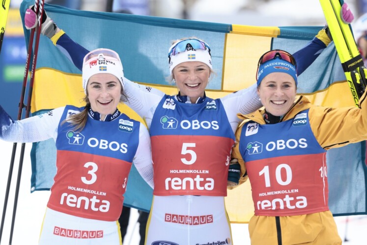 Als die Zeit zum Attackieren für Frida Karlsson gekommen war, waren von allen Athletinnen zur Halbzeit die Ski gewechselt worden, 31 Kilometer waren gelaufen und noch neun Damen gehörten zur Spitzengruppe. Als die 24-Jährige im Anstieg zur Kapelle das Tempo verschärfte, konnte keine der anderen acht Athletinnen folgen. Man konzentrierte sich auf den nächsten zwei Runden auf den Kampf um die restlichen zwei Podestplätze, so dass der Abstand rasch anwuchs und die Schwedin ihren ersten Fünfziger schließlich mit 1:19 Minuten Vorsprung gewann. „Es hat sehr viel Spaß gemacht. Ich habe so hart gearbeitet für die Lücke, dass ich in der letzten Runde völlig erschöpft war. Aber trotzdem haben die 50 Kilometer Spaß gemacht. Ich hatte Eis im Bauch in den ersten Runden, wie wir in schwedisch sagen, aber dann habe ich Vollgas gegeben. Ich war wie die anderen nervös vor den 50 Kilometern, aber auch aufgeregt“, sagte die Schwedin nach ihrem zweiten Sieg am Holmenkollen – dem ersten über 50 Kilometer. Im NRK Interview erzählte sie, dass dieser Erfolg kein Zufall ist: „Ich mache ein spezielles Intervalltraining mit drei Intervallen von 16 Kilometern mit jeweils einer Pause dazwischen. Das ist in den letzten drei Jahren zu einem Standard-Training für mich geworden, so dass ich auf so ein Rennen vorbereitet war. Ich denke, der Erfolg gibt mir Recht. Das ist etwas, was ich wohl so ziemlich als Einzige mache. Es hat einen anderen Effekt als das normale vier, fünf oder sechs Minuten Intervall mit Pausen. Es stärkt den Körper, um etwas mehr Langlauf trainieren zu können“, gibt sie ihr Erfolgsrezept preis. Einen kleinen Fauxpas erlebte Frida Karlsson in der Königsloge. Sie begrüßte die Königin, die Prinzessinnen, wünschte dem abwesenden König eine gute Genesung und begann mit Smalltalk – aber übersah ausgerechnet Kronprinz Haakon, was ihr sehr peinlich war. „Bis auf diesen kleinen Fehler war es ein perfektes Treffen“, sagte die Schwedin später. Rang zwei sicherte sich schließlich Ebba Andersson, die seit ihrer Corona-Infektion zu Weihnachten mit ihrer Form haderte und in Interviews nach weiteren Enttäuschungen immer wieder in Tränen ausbrach. Heute hatte sie allen Grund zur Freude, nachdem sie sich in der letzten Runde im Anstieg zum Frognerseteren abgesetzt hatte. Ihren Vorsprung auf die Gruppe baute sie bis auf 16 Sekunden aus, die auf den letzten Kilometern aber bis auf sechs Sekunden wieder zusammenschmolzen.