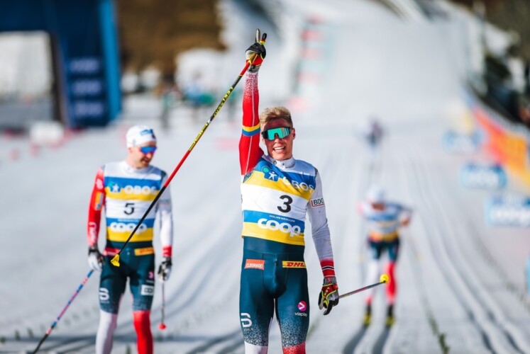 Auch für Dario Cologna war das Rennen heute ähnlich emotional wie gestern für Therese Johaug. Er wird nächste Woche nicht mehr mit nach Falun reisen, sondern in der Heimat den Engadin Skimarathon bestreiten. Umso schöner, dass er sein 285. und letztes Weltcuprennen trotz seines Sturzes unter den besten Zehn beenden konnte. Er war der einzige deutschsprachige Athlet, der so weit vorne mithielt, nachdem alle anderen Schweizer und Deutschen vorher abreißen ließen und der Österreicher Mika Vermeulen wegen einer Corona-Infektion nach der U23-WM nicht starten konnte. Nach dem Sturz in Runde fünf liefen Cologna und Krüger wieder an ihre Gruppe heran und kämpften schließlich im Zielsprint mit Moseby und dem zurückgefallenen Amundsen um Platz acht. Im Ziel wurde er von seinem Team gebührend gefeiert und er ließ die Korken knallen. Vor vier Jahren hatte Cologna seine Karriere am Holmenkollen veredelt. Mit dem 26. und letzten Weltcupsieg beseitigte er den Fluch, der sich bei ihm über den 50er weniger einiger Stürze im dümmsten Moment gelegt hatte.