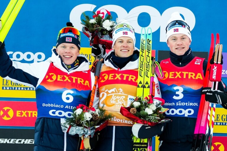 Lars Heggen (NOR), Johannes Hoesflot Klaebo (NOR), Oskar Opstad Vike (NOR), (l-r)