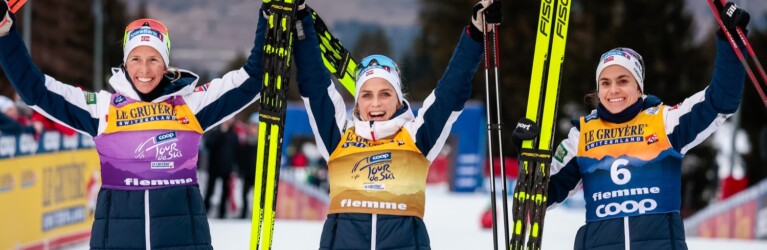 Gewinner des Massenstarts: Astrid Oeyre Slind (NOR), Therese Johaug (NOR), Heidi Weng (NOR), (l-r) © Modica/NordicFocus