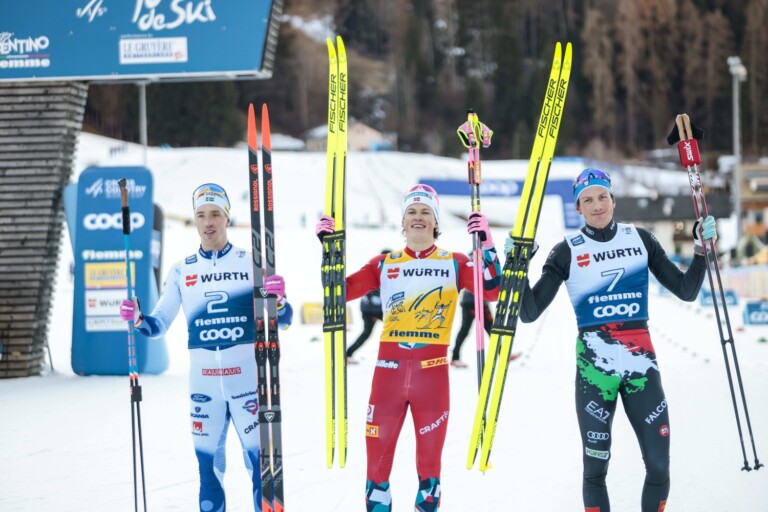 Calle Halfvarsson (SWE), Johannes Hoesflot Klaebo (NOR), Simone Mocellini (ITA), (l-r) © Modica/NordicFocus