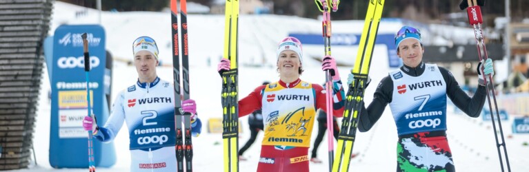 Calle Halfvarsson (SWE), Johannes Hoesflot Klaebo (NOR), Simone Mocellini (ITA), (l-r) © Modica/NordicFocus