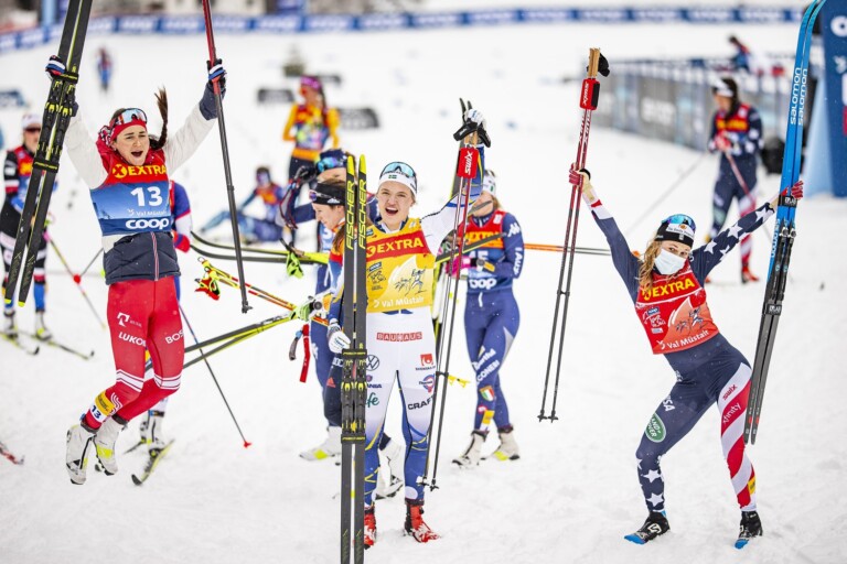 Yulia Stupak (RUS), Linn Svahn (SWE), Jessie Diggins (USA), (l-r) © Modica/NordicFocus