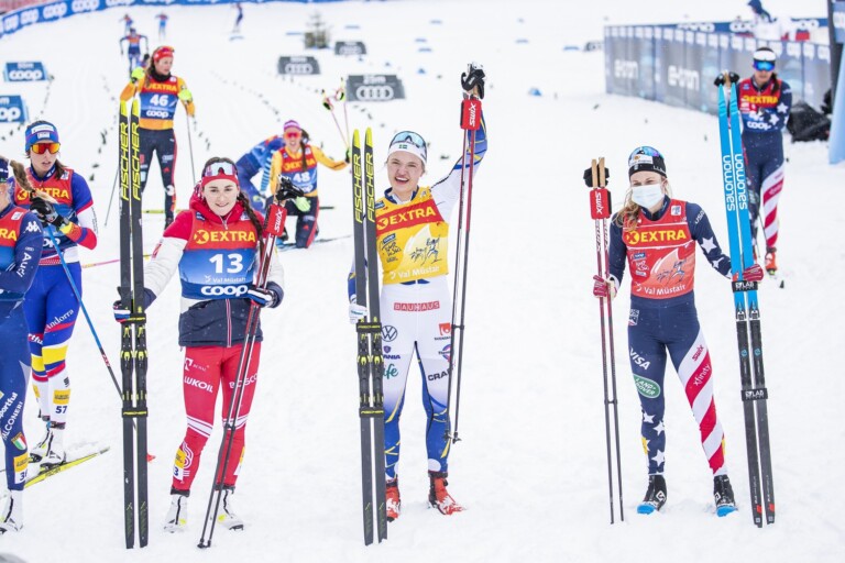 Yulia Stupak (RUS), Linn Svahn (SWE), Jessie Diggins (USA), (l-r) © Modica/NordicFocus