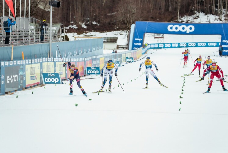 Teresa Stadlober bestätigte nach ihrem sechsten Platz beim letzten Rennen in der Schweiz auch heute ihre aufstrebende Form. Die Salzburgerin zeigte sich von Beginn an sehr aktiv und hielt sich im Laufe des Wettkampfes immer an der Spitze des Feldes, so dass sie auch als Vierte den Bonussprint passierte. Auch auf den letzten Kilometern des fordernden Rennens war die Österreicherin immer noch Teil der mehrköpfigen Führungsgruppe und Teresa Stadlober schaffte am Ende mit Platz sieben und nur 4,6 Sekunden Rückstand erneut den Sprung unter die besten Zehn und durfte sich damit zum Abschluss dieses Jahres über ein weiteres Spitzenergebnis freuen. „Das Rennen heute war wieder richtig cool. Es war ein wirklich schnelles, eisiges und auch hektisches Massenstart-Rennen, aber es hat viel Spaß gemacht. Die ersten beiden Runden habe ich mich richtig gut gefühlt und versucht, meine vordere Position zu halten. Am Ende war ich dann schon ein bisschen müde und konnte leider nicht mehr ganz vorne mitkämpfen“, sagte die Österreicherin. „Trotzdem bin ich heute total happy, denn Platz sieben mit weniger als fünf Sekunden Rückstand und jetzt in den Top-Ten in der Gesamtwertung zu sein, ist richtig cool. Vor allem freut es mich, dass mir endlich ein starkes Skating-Rennen gelungen ist und ich gezeigt habe, dass ich auch in dieser Technik ganz vorne mitlaufen kann.“ Beste Schweizerin wurde heute nicht Nadine Fähndrich, sondern zwei Teamkolleginnen landeten diesmal vor ihr. Nadja Kälin belegte einen tollen 19. Platz, nur 39 Sekunden hinter der Siegerin. Auch Lydia Hiernickel lief als 29. noch in die Punkte, was Nadine Fähndrich als 34. nicht mehr gelang. Laurien van der Graaff belegte Rang 43.