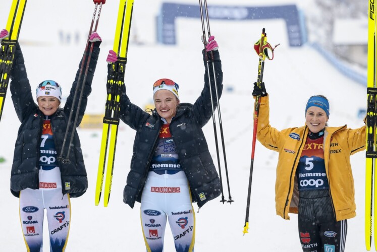 Hinter Frida Karlsson schaffte Katharina Hennig den Sprung aufs Podium an ihrem Lieblingsort im Weltcup, wo sie vor einem Jahr ihren ersten Weltcupsieg feierte. Jonna Sundling war direkt hinter ihr, konnte sie aber nicht mehr angreifen und belegte Platz vier vor Teresa Stadlober und Delphine Claudel, die sich in ihrer schwächeren Technik beachtlich schlug. Victoria Carl kam als sehr gute Siebte ins Ziel vor Jessie Diggins, Heidi Weng und Kerttu Niskanen, die heute wie die Amerikanerinnen offenbar nicht ganz den perfekten Ski erwischte, denn auch Rosie Brennan wurde in ihrer besseren Technik mit kleinem Abstand nur Zwölfte. Jessie Diggins kollabierte im Ziel, wie man es kennt, wenn sie sich völlig verausgabt. Diesmal waren aber auch starke Schmerzen der Grund, die noch vom Sturz in Davos stammen. Um was für eine Verletzung es sich genau handelt, ist aber nicht bekannt. Auch Rosie Brennan weiß nicht, wir es ihrer Teamkollegin wirklich geht: „Sie ist hart im Nehmen, aber ich weiß nicht, was sie fühlt. Fragt sie selbst“, sagte sie dem Expressen. Auch Krista Pärmäkoski machte sich Sorgen, als sie die Amerikanerin unter Schmerzen im Ziel liegen sah. Zeigt Respekt“, forderte sie von Fotografen und Kameramännern: „Wenn jemand so starke Schmerzen hat, sollte man nicht mit der Kamera draufhalten. Macht nicht so viele Bilder!“