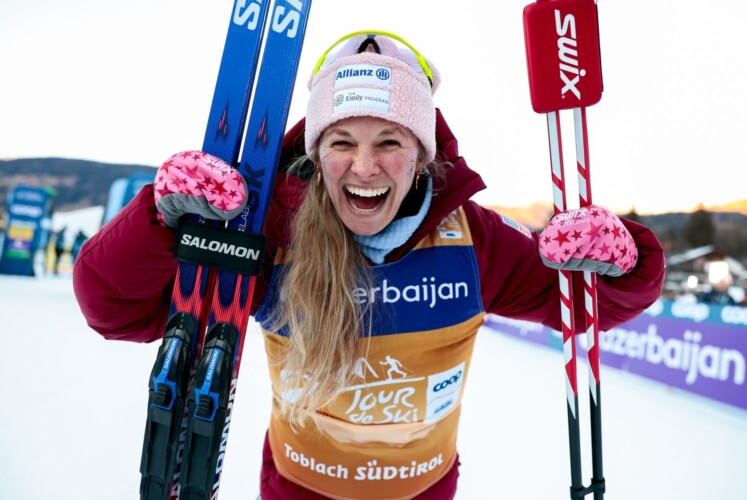 Jessie Diggins heißt verdientermaßen die Siegerin des ersten Heat Massenstart der Damen auf der dritten Etappe der Tour de Ski in Toblach. Das Format sorgte für einige Überraschungen hinter dem Podium.