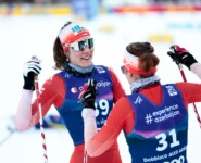 Aber das war noch nicht das Ende der Fahnenstange, denn beim Blick auf die Zusammensetzung des dritten Laufes war klar: Jetzt geht die Post ab, denn jetzt stand der Heat von Jessie Diggins auf dem Programm. Die Amerikanerin fühlte sich nach dem Sieg von Gus Schumacher förmlich beflügelt und gab vom ersten Meter Vollgas. In der zweiten Runde hielt Nachwuchstalent Eva Ingebrigten das Tempo hoch, bevor im Anstieg Moa Ilar mit Emma Ribom attackierte und anschließend wieder Jessies Abschnitt gekommen war. Die Tour-Führende attackierte im vorletzten Anstieg am Stadion und stürmte mit tollem Material auf und davon. Sie holte den Sieg vor Ribom, Ilar, Leonie Perry, Alison Mackie und Elisa Rucka-Michalek. Ebba Andersson wurde Siebte vor Dariya Nepryaeva, die außerhalb des Stadions von der Pizzeria direkt neben der Strecke von ihrem Trainer Egor Sorin angefeuert wurde, der auch ohne Akkreditierung als Tourist nach Italien reiste. Eva Ingebrigtsen, U23-Weltmeisterin mit der Staffel und Vize-Weltmeisterin im Klassik-Massenstart von Schilpario, die mit 40 Sekunden Rückstand ins Ziel kam, erntete im Ziel dennoch ein großes Lob von Jessie Diggins: „Du hast das toll gemacht, wir konnten es nur zusammen schaffen.“ Dass genau das geplant war, erzählte die Amerikanerin später im ZDF: „Das hat richtig Spaß gemacht, es war sehr schnell. Unsere Ski waren sehr gut. Ich bin so stolz auf Gus. Das ganze Team hat tolle Arbeit gemacht, wir hatten eine gute Strategie gehabt und tolle Ski. Wir wussten, dass wir zusammenarbeiten müssen. Wir hatten uns abgesprochen: Ich fange an, dann Ebba am Berg und dann wieder ich und das hat gut geklappt.“ Fast wie abgesprochen, nur dass es Moa Ilar war, die am Berg angriff.