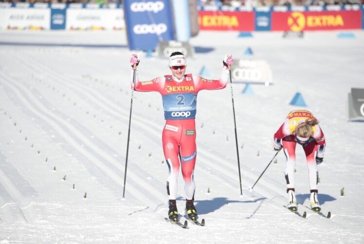 Auf der vierten Etappe der Tour de Ski in Toblach wurden erstmals die Klassikski ausgepackt, ein Verfolgungsrennen nach den Ergebnissen des Vortags stand auf dem Programm. Von vornherein stand fest, dass man deswegen nicht schon nach der Hälfte der Distanz Therese Johaug als Siegerin ausrufen konnte, sondern dass es ein enges Rennen werden würde. Quasi zeitgleich waren beide Norwegerinnen ins heutige Rennen gestartet und bleiben bis zum Schluss zusammen. Eine brenzlige Situation mussten beide auf der ersten 3,3km-Runde absolvieren, als sie sich in einer Linkskurve verhakten und Østberg einen Sturz nur knapp vermeiden konnte. Die Entscheidung sollte am letzten Berg fallen – zumindest nach Johaugs Ansicht. Nach einer Tempoverschärfung öffnete sich oben auf der Kuppe eine kleine Lücke, die Østberg in der Abfahrt ins Stadion aber wieder schließen konnte. Wie erwartet setzte sie sich auf der Zielgeraden dank besserer Sprintfähigkeiten gegen ihre Freundin durch und feierte ihren 17. Weltcupsieg. „Es sind meine ersten Rennen in dieser Saison, also ein sehr spezieller Saisonstart für mich, deswegen denke ich nicht zu so viel an die Gesamtwertung. Aber es ist ein überraschend guter Start für mich. Val di Fiemme wird spannend für mich“, sagte sie später in gutem Deutsch.