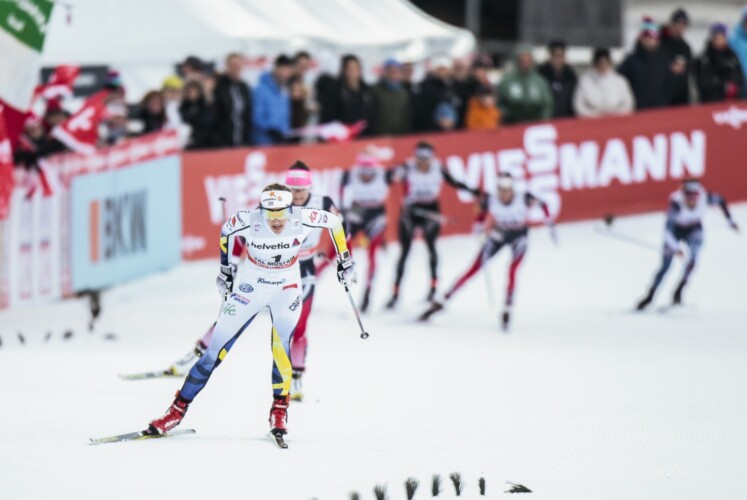Obwohl die deutsche Sprinthoffnung bei den Herren, Sebastian Eisenlauer, nach einer Erkältung über Weihnachten seine Teilnahme an der Tour noch am gestrigen Freitag absagen musste, konnte das deutsche Team mit dem Verlauf des ersten Tages sehr zufrieden sein. Gleich drei DSV-Athleten qualifizierten sich für die Halbfinals, darunter Thomas Bing. Der Rhöner musste auf der ersten Runde seines Semifinals die ersten Vier zwischenzeitlich einmal ziehen lassen. Da das Tempo lange Zeit sehr gering war, konnte die Gruppe aber wieder zusammenfinden und der Deutsche ging sogar ganz nach vorn. Als Pellegrino dann richtig Gas gab, gelang es „Bingo“ nur noch, sich an Larkov zu hängen. Im Zielsprint konnte er dann aber weder den Russen noch den heranstürmenden Harvey halten, so dass er als Lauf-Vierter, aber dennoch sehr zufrieden ausschied. „Mit Platz acht habe ich das Ticket für die WM gelöst. Dass das ausgerechnet im Sprint passiert, damit konnte ich nicht rechnen. Zumindest nicht mit der ganzen Norm. Da bin ich sehr glücklich drüber“, meinte ein glücklicher Thomas Bing und erzählt weiter: „Beim zweiten Mal war das nicht so geplant, dass ich von ganz hinten laufe. Da bin ich schlecht rausgekommen, eingeklemmt worden und nicht rausgekommen in der ersten Linkskurve. Aber es war so geplant, dass man den etwas längeren Weg geht auf der Geraden hochwärts, weil es sich dann am Ende nach rechts orientiert und dann wieder nach links und dann hat man die Innenbahn und kann dann schön den Berg hochlaufen“. Ähnlich zufrieden konnten auch die Damen sein, nachdem Hanna Kolb und Sandra Ringwald den Sprung unter die besten Zwölf schafften. Kolb legte nach einer leichten Berührung in der ersten Kurve eine kleine Drehung ein und musste die Lücke wieder schließen. Sie konnte sich bis auf Platz fünf ihres Laufes schieben, mehr war aber nicht drin, als vorne die Post abging. Auch Sandra Ringwald musste sich mit Platz vier im zweiten Halbfinale begnügen, nachdem sie die erste Runde noch gut mithielt. Auf dem Weg ins Stadion nahm sie viel Tempo aus der letzten Abfahrt mit und zog so noch an Krista Pärmäkoski vorbei. Die beiden Zimmerkolleginnen belegten die Plätze acht und neun. Ebenfalls erfreulich ist, dass sich mit Sofie Krehl bei ihrem ersten Tour-Start sowie Steffi Böhler und Elisabeth Schicho drei weitere DSV-Damen unter die besten 30 schoben. Nicht zufrieden sein konnte Nicole Fessel mit ihrem viel zu frühen Ausscheiden. „Ich bin ganz schnell festgegangen, habe in der zweiten Runde am Anstieg fast gestanden. Keine Ahnung, was da passiert ist. Ich habe gut trainiert und fühle mich in Form“, erklärte die Allgäuerin nach dem Rennen.