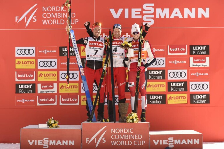 Bildergalerie Nordische Kombination Schonach: Schwarzwaldpokal Lukas Greiderer (AUT), Bernhard Gruber (AUT), Jarl Magnus Riiber (NOR), (l-r) © Thibaut/NordicFocus 1 2 3 4 5 6 7 8 9 10 11 12 13 14 15 16 17 © Bilder 1 - 15, 17: Thibaut/NordicFocus; Bild 16: Sandra Volk;