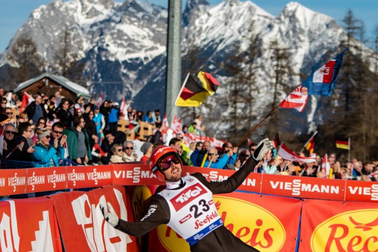 Bildergalerie Nordische Kombination Seefeld, Samstag Genoss den Jubel der Zuschauer: Johannes Rydzek (GER) war endlich wieder glücklich mit seinem Sprung. © Volk/NordicFocus 1 2 3 4 5 6 7 8 9 10 11 12 13 14 15 16 17 18 19 20 © Bilder 1 - 20: Volk/NordicFocus;