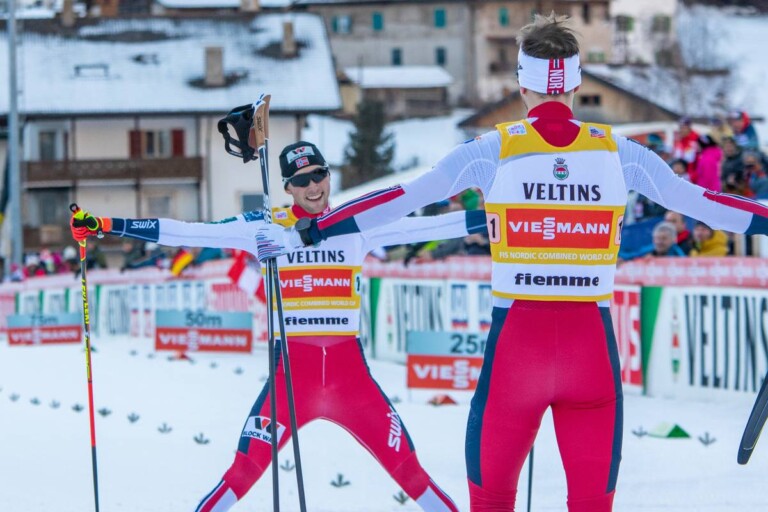 Bildergalerie Nordische Kombination, Teamsprint Val di Fiemme, 12.01.20 Jarl Magnus Riiber (NOR) wird von Joergen Graabak im Ziel erwartet. © Volk/NordicFocus 1 2 3 4 5 6 7 8 9 10 11 12 13 14 15 16 17 18 19 © Bilder 1 - 19: Volk/NordicFocus;