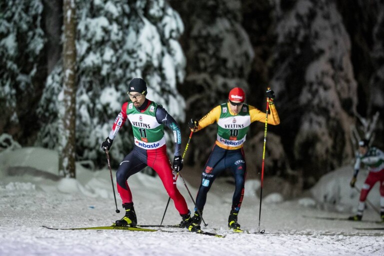 Nordische Kombination: Bildergalerie vom dritten Tag in Ruka Terence Weber hinter Yoshito Watabe. © Modica/NordicFocus 1 2 3 4 5 6 7 8 9 10 11 12 13 14 15 16 17 18 19 © Bilder 1 - 2: Vianney THIBAUT/NordicFocus; Bilder 3 - 19: Modica/NordicFocus;